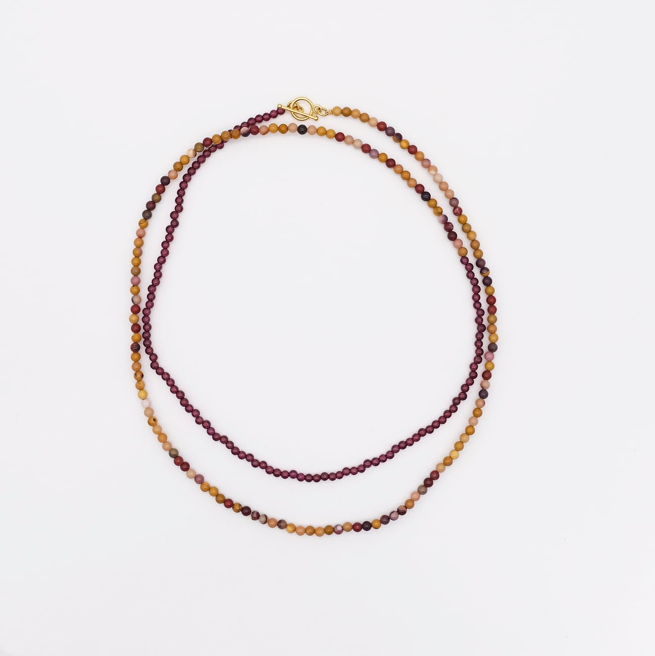 大地の温もりを宿すムーアカイト(鉱物名:カルセドニー)に、深く静かな赤を灯すガーネット。