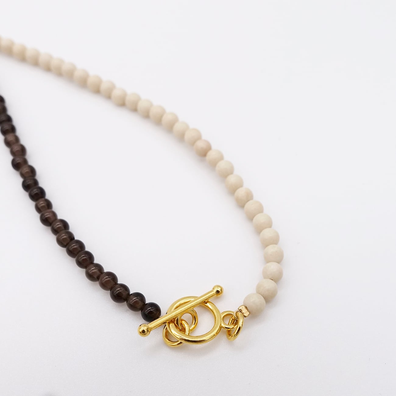留め具には上品なゴールドカラーを合わせ、軽やかに長さを楽しめるデザインに仕立てました。