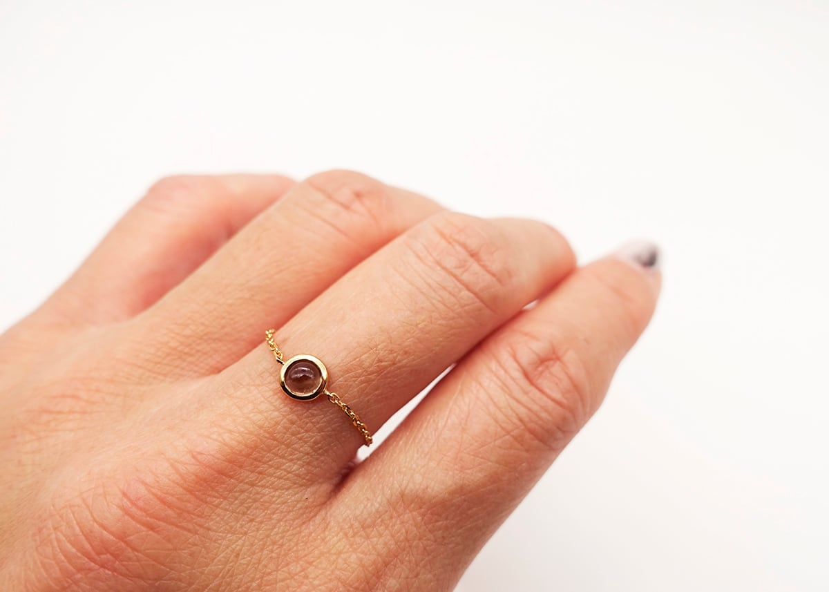 スモーキーな陰影をそっと閉じ込めた、スモーキークォーツのチェーンリング。
