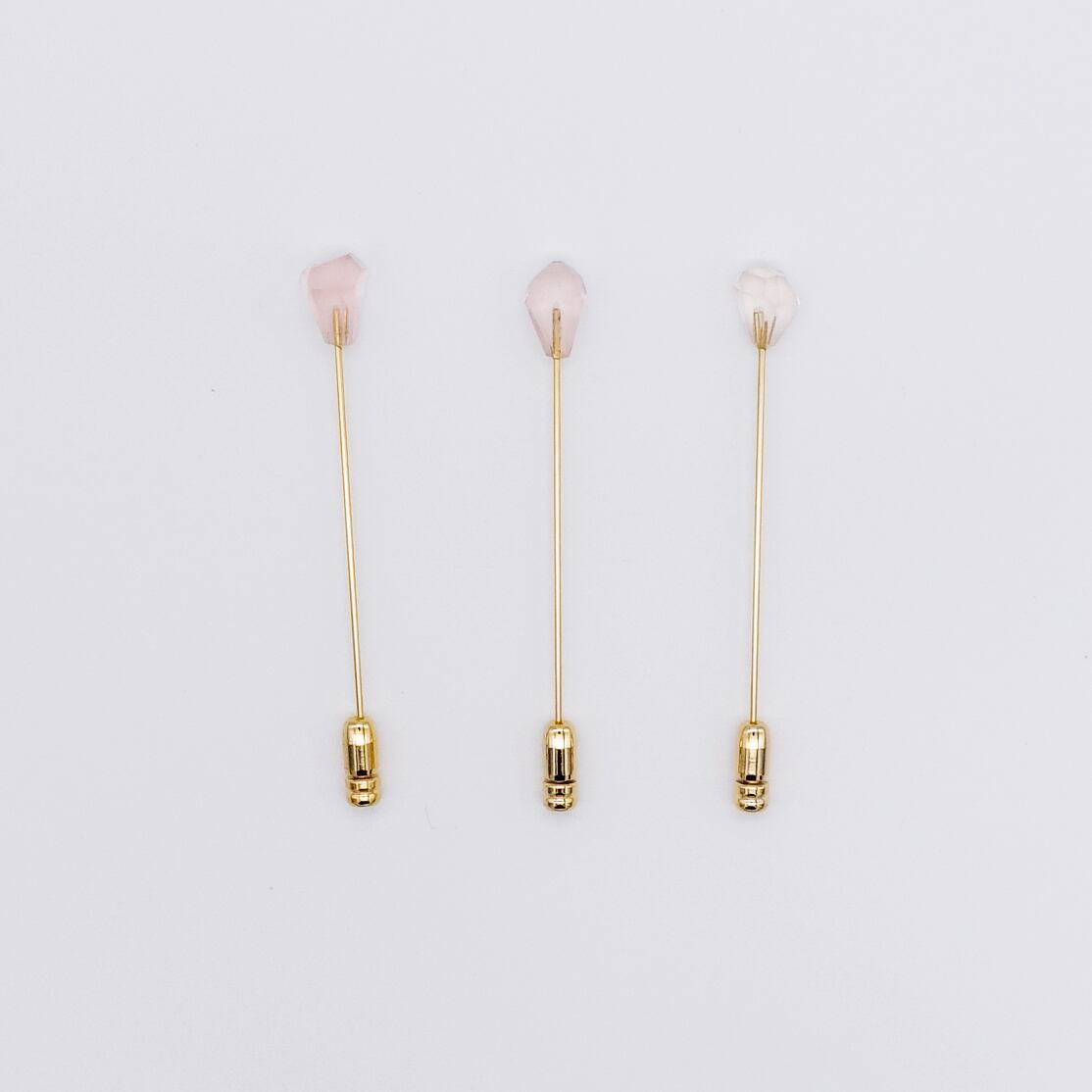 ひとつとして同じカットが存在しない、天然石をつぼみに見立てたピンブローチ。