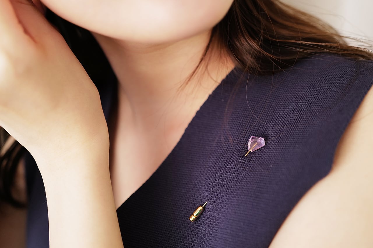ひとつとして同じカットが存在しない、天然石をつぼみに見立てたピンブローチ。