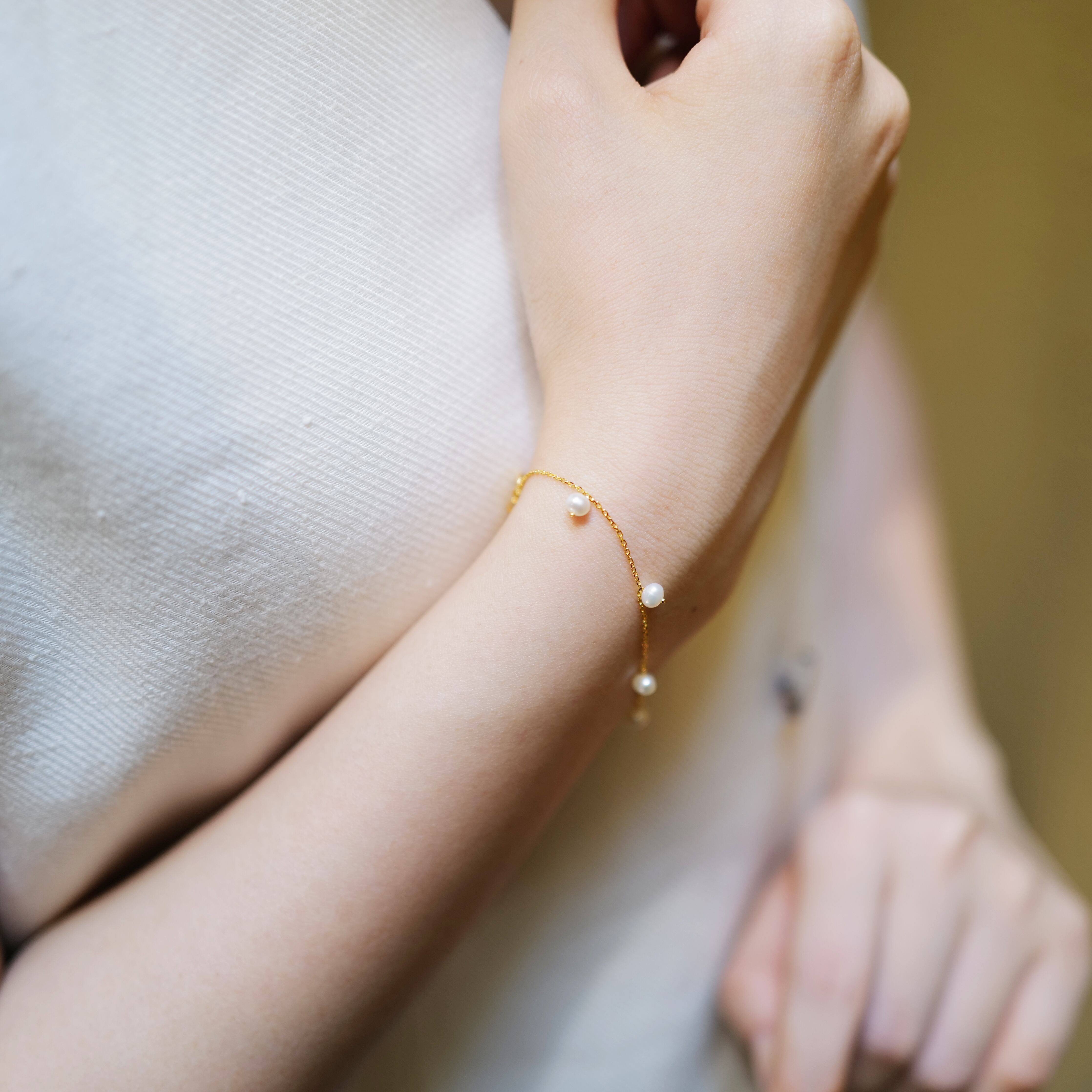 華やかな輝きと繊細なデザインが魅力の「粉雪パールブレスレット」