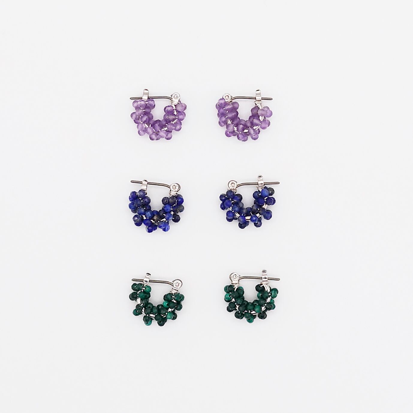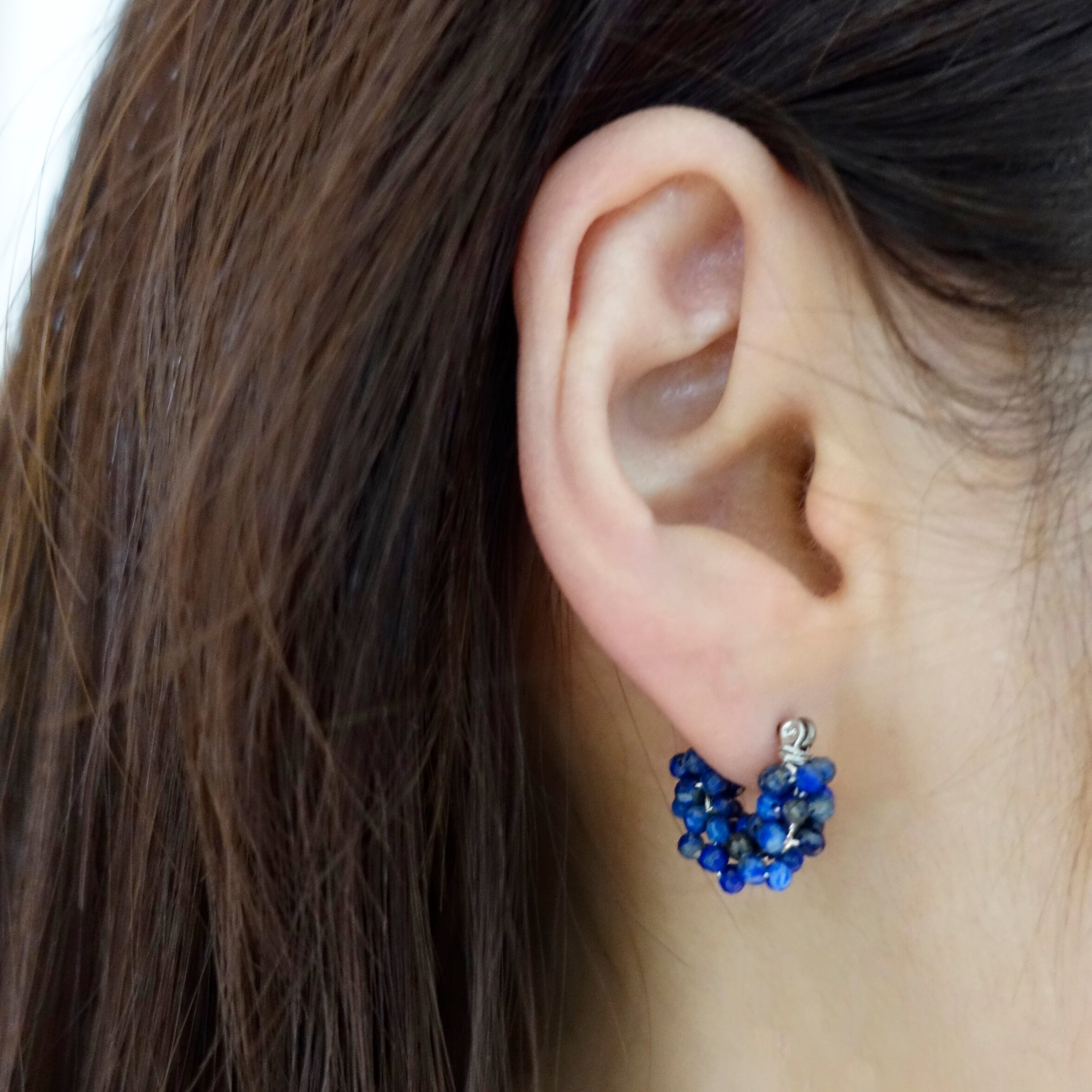 ミニフープピアスというシンプルなデザインに、ラピスラズリのビーズがアクセントとなっています。天然石の美しい輝きが、カジュアルなコーディネートに上品な華やかさをプラスしてくれます。