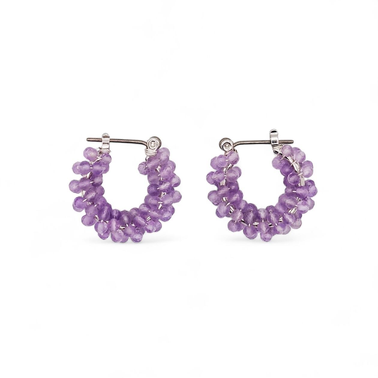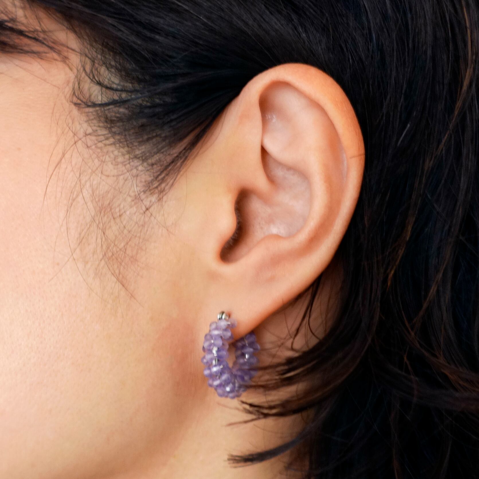 優しいパープルカラーが特徴のアメシストフープピアスにLサイズが登場